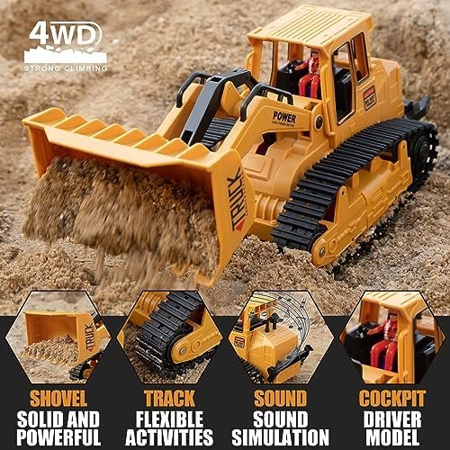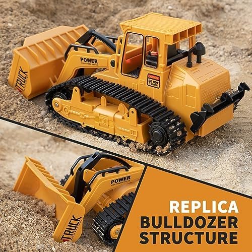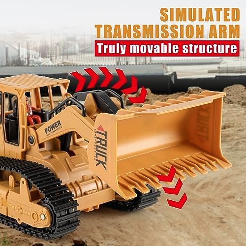 1/20 Construction Bulldozer Toy – Kids Toy Engineering Digger Truck, Remote Control Hydraulic Toy Car for 6 7 8 9 Year Old Boys Girls, Beginner Car Tractor Vehicle Birthday Gifts for Kids