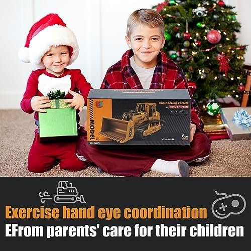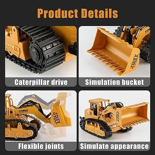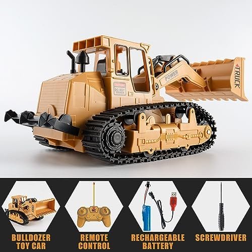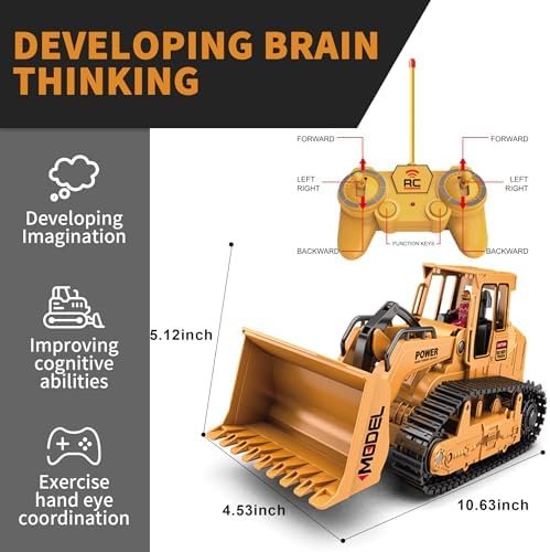 Safe & Portability : Made of premium plastic, more durable and not easy to wear and tear. Our RC Bulldozer truck toys are equipped with a USB charger, rechargeable batteries, controller and remote-controlled Bulldozer vehicle