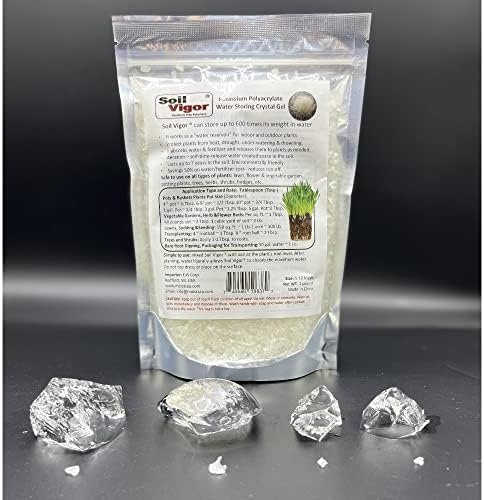 Potassium Polyacrylate PolymerWater Storing Crystal GelReduces the Need for Plant WateringSave Water, Time, and money for PlantsCan store up to 800 times its weight in waterSoil Vigor is long-lasting and reusable for up to 7 years