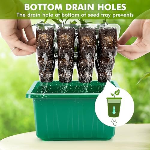 Transparent Cells Trays: The seedling starter trays in this set are transparent, so you can observe the roots’ growth and get a better idea of when to transplant them outside, Drainage holes at the bottom of the seed starter kits help avoid root rot if you accidentally overwater your seedlings.