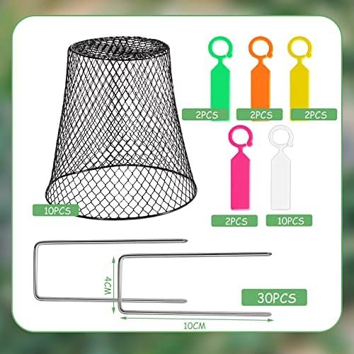 large quantity:you will receive 10 pieces plant protectors, 30 anchors, 10 white labels and 10 color labels,enough black chicken wire protection basket to provide security for your products and guard the fruits of your labor with our all season plant barrier.