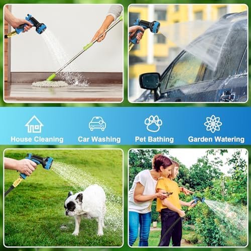 10 Spray Modes — This spray nozzle features a non-slip, comfortable grip and a rotating bezel for switching between 10 different spray modes. It is easy to operate and won’t strain your hand. With this flexible water hose, you can easily tackle a variety of watering and cleaning tasks, such as watering crops and flowers during different stages of growth, bathing pets, cleaning cars, floors, swimming pools, windows, and more. The 3/4-inch leak-proof connector is suitable for US garden faucets.