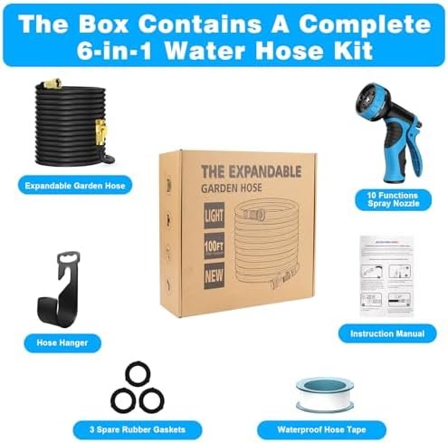 No More Leaks — The water pipe is equipped with 3/4-inch standard solid brass fittings and leak-proof rubber washers, capable of withstanding high water pressure. Therefore, you don’t have to worry about the hose rusting, leaking, or bursting. This hose can be interconnected to achieve longer lengths as needed, such as 150 feet, 200 feet, and so on. If you have any questions or issues regarding our expandable garden hose, please don’t hesitate to contact us.