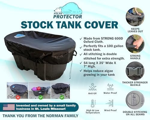 Keep Your Stock Tank Clean and Contaminant-Free: Our 600D canvas cover is custom-designed to fit your 100 gallon oval plastic foam stock tank, featuring handles on each side, a buckle for tightening, and a drawstring for added security, ensuring that your stock tank stays free from debris, bugs, and other contaminants. It’s also waterproof! 55 Inches Long, 35 Inches Wide and 7 Inches Down make it a perfect fit for your tank! **Patent Pending**