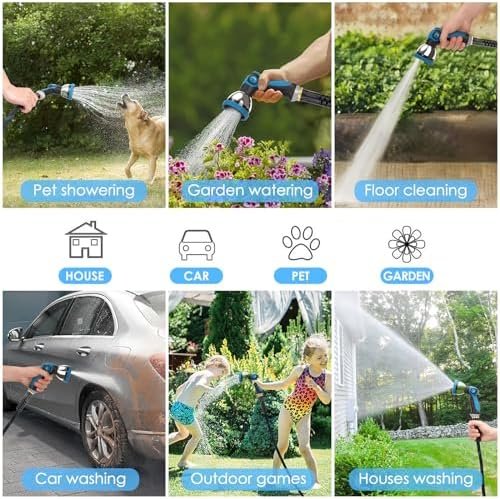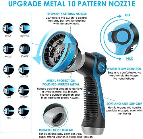 Upgraded 10-Function Spray Nozzle: Equipped with the latest thumb-controlled 10-function nozzle, ergonomically designed for comfortable operation. The rotating nozzle offers 10 spray modes, suitable for various washing, garden watering, pet cleaning, having fun, camper, or business use.