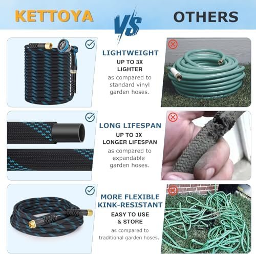 New-Gen Garden Hose Solution: KETTOYA’s new water hoses break through the limitations of traditional hoses, offering a new hose that is lighter, more durable, flexible, and kink-resistant. Enjoy your garden life. We offer a 2-year warranty, and if you encounter any issues, feel free to contact us; we’ll assist within 12 hours.