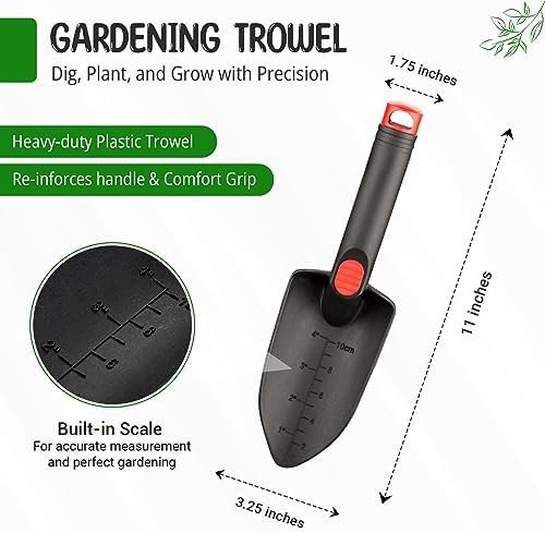 Begin Your Gardening Adventures with Our 11″ Heavy Duty Plastic Hand Trowel! Perfect for everything from backpacking and beach trips to everyday gardening, this multi-functional tool is your all-in-one solution. Dig, plant, scoop, and more with ergonomic comfort and precise measurements. Your perfect outdoor companion awaits. Get yours today!