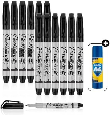 QUANTITY OF SET: Pack of 12 permanent markers with 1mm tip point that marks on even the most difficult surfaces and 1 white washable glue stick with strong and durable glue to stick paper, decorations, and artwork