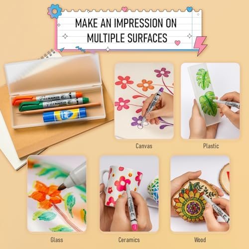 LONG-LASTING ON MULTI-SURFACE: Quick-drying and waterproof ink is smear-proof or smudges indoors and outdoors. Ideal for marking or writing on paper, leather, metal, glass, porcelain, canvas, plastics, ceramics…