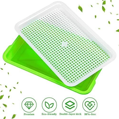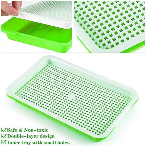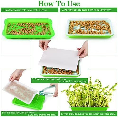 Wide use: the seedling tray can germinate many types of small seeds, such as beans, peas, mung beans, wheat grass seeds, alfalfa, vanilla, radish, perilla, cabbage, okra, peanuts, green beans, radish, cauliflower, etc.; it is very convenient and easy for starters to grow microgreens