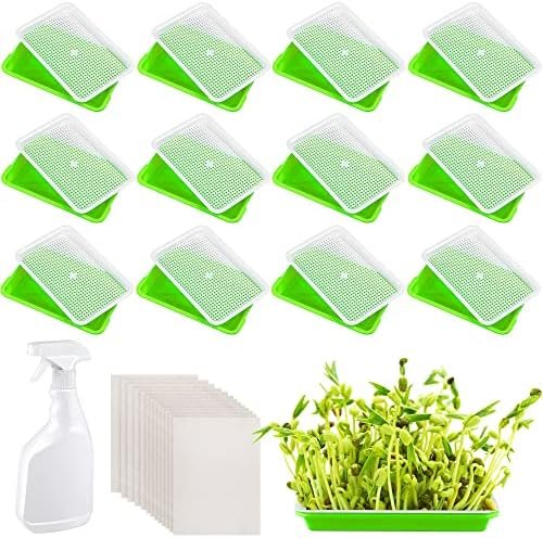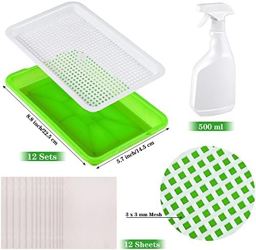 12 Sets Seed Sprouter Tray with Drain Holes Microgreens Growing Kit with Germinating Paper Garden Plant Germination Propagation Trays Nursery Tray for Seedling Planting