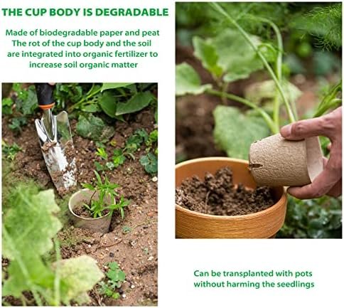 【Easily Transplaant Without Shocking】When plants take root and sprout, the planting pots for seeds will be biodegraded and become organic nutrients for absorption by plants, just transplant the whole seed starter pots to the ground or larger plant pots, they will break down on their own.