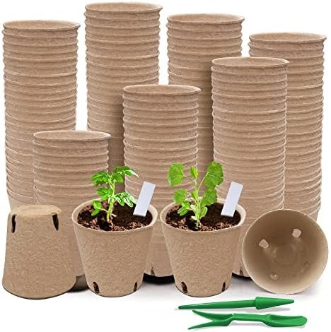 【Cost-Effective Seed Starting Pots with Great Bonus】Biodegradable plant starter pots package include 120 pack plant germination pots; 30 premium planting labels; 2 mini plant transplanting tools.