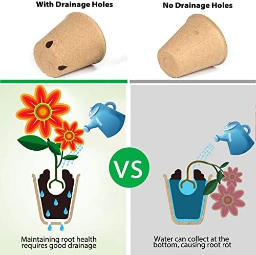【Seeding Pots with Drainage Holes】Plant starter peat pots will not absorb water from the soil, so using these requires more water, but waterlogged soil is bad for seed. Pulp pots offering superior drainage and moisture retention, ensure the health of plants.