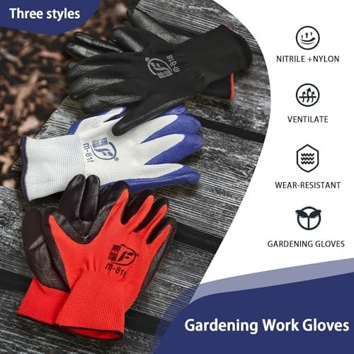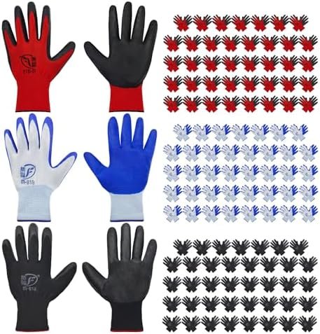 443443443443 120 Pair Gardening Gloves for Men Women, Breathable Rubber Coated Garden Gloves Working Gloves for Gardening, Construction (Black, Red, Blue) – 4zera3a