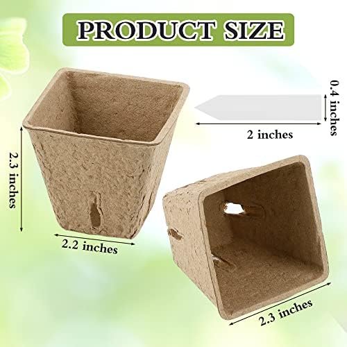 Square peat pots: the square peat pot plant starters are about 2.3 x 2.3 x 2.2 inches, which is suitable for vegetable, flower, and melon seedlings cultivation; and the plant label size is about 2 x 0.4 inches, suitable for your use