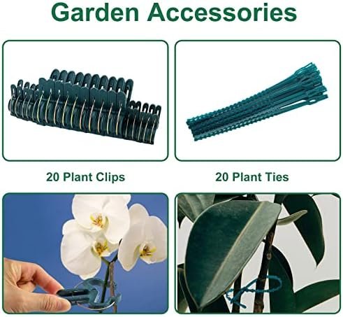 14 Pack Tall Plant Stakes: Comes with 14-pack metal garden stakes, 20-piece plant clips, and 20-piece plant twist ties for gardening. Plant stakes for indoor plants or outdoor plants, can also be used as a garden fence border.