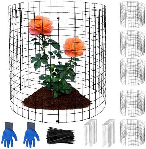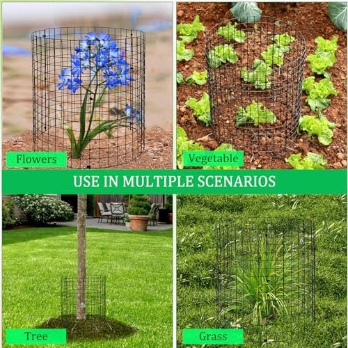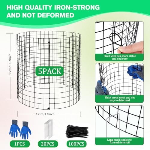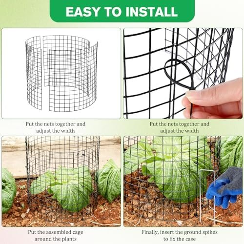 【Assemble Easily】The plant protector set comes with gloves and requires no tools to assemble, so setting up these durable plant cages & supports in your garden is easy. Put 3 mesh pieces or more mesh pieces together to form a circle to form a protective cage for large plants; the metal mesh can also be flattened into a square or rectangular protective cage to protect more plants and then use tie them up with zip ties and secure with stakes