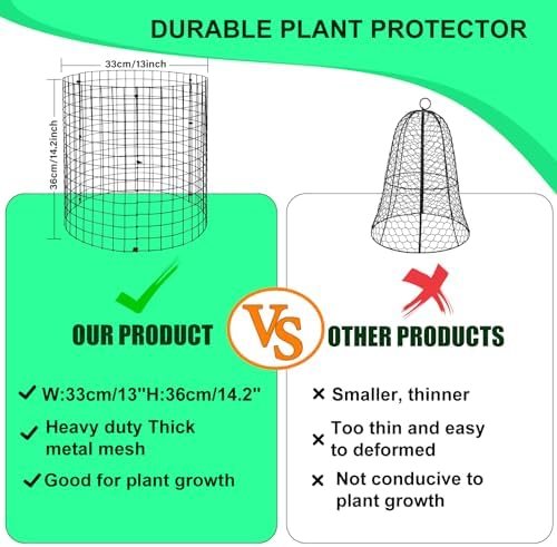【Superior Material】These plant cages are made of thick metal and vinyl coating which keep each unit protected from the elements, sturdy and durable, not easily damaged and deformed. The fine mesh can nicely keep small animals away from plant, provides a comfortable growth space for plants and flowers