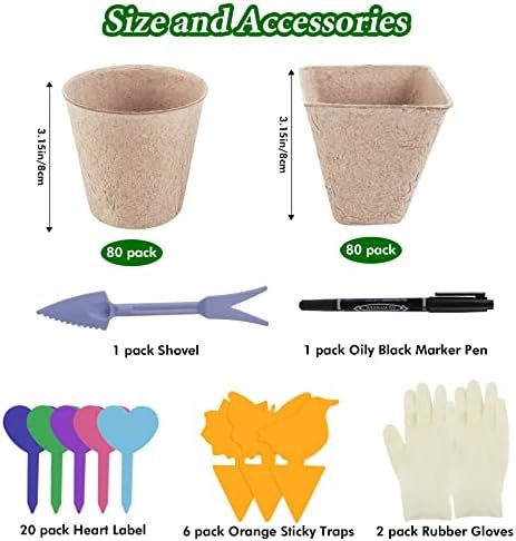 Great packaging seedling pots: the package of peat cups used for seedling planting includes 80 round and 80 square seed starter kit and many useful gifts. The peat cups in our seed starter tray can easily help you distinguish the plants you grow. Such a configuration of our seed starter pots in the market is relatively more mature.