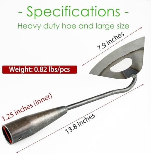 【Specification】This standard draw hoe, with its robust manganese steel blade, can withstand powerful chopping and pulling. The blade is 7.9 inches wide and 13.8 inches long, including the steel shaft that connects to the handle. (2Pcs/set)