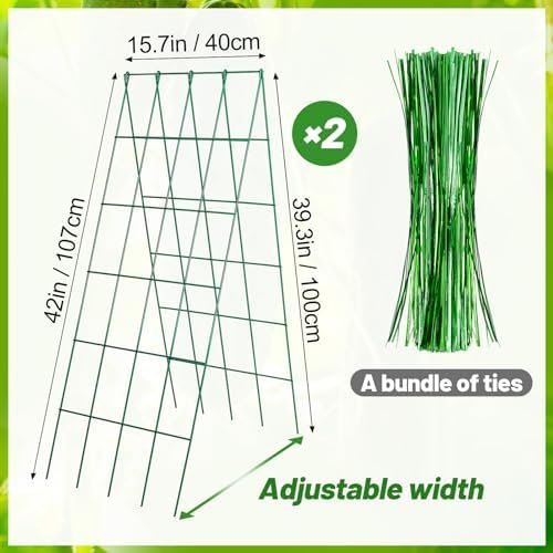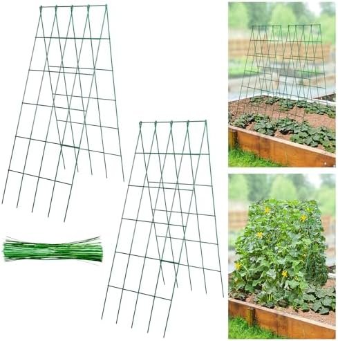 – Package: Includes 2 A-frame trellises and a bundle of ties.