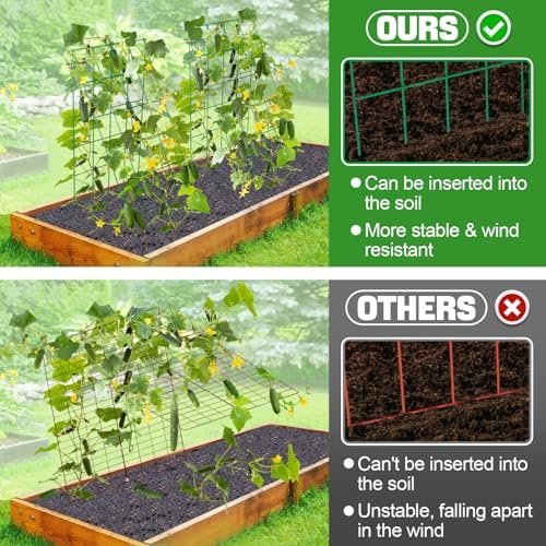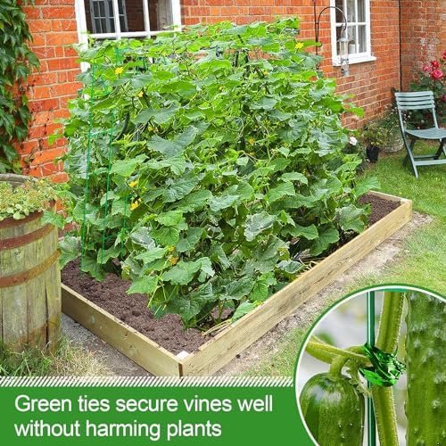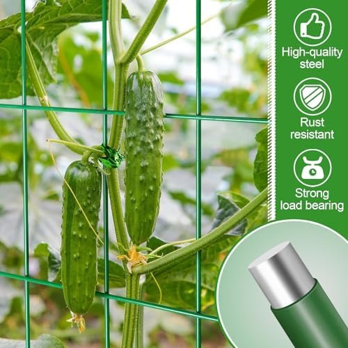 Easy to Use: Simply connect the two panels of our garden cucumber trellis with ties and adjust the angle to your liking. Bury the bottom into the soil to anchor the trellis securely. The included green ties make it easy to fasten your plants firmly to the trellis.