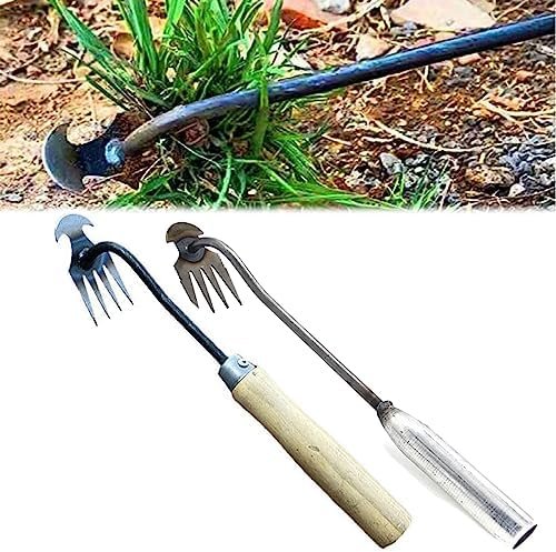 Durable Material: The four-tooth uprooting weeding tool is made of high-quality anti-rust manganese steel, with high hardness and durability. The 8 mm steel bars has high impact resistance and tensile strength, not easy to deform or break. The polished surface is non-stick.