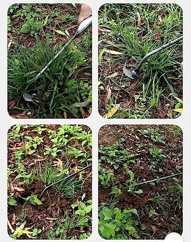 Practical Weed Pulling Tool: 12 inches lengthen weeder tool. It is the perfect length for a weed puller. Use electroplated and polished craftsmanship, the durable handle is more comfortable to hold, which is better than other weeder in the market.