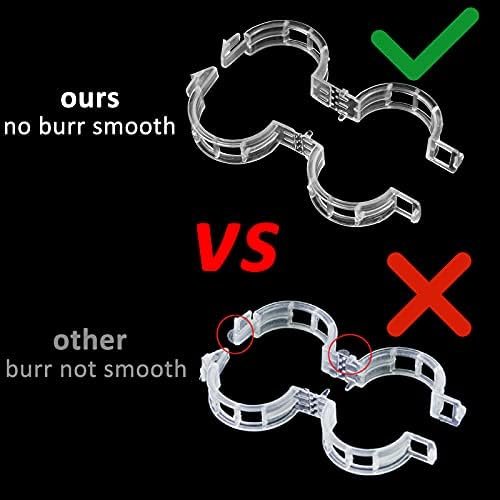 PLASTIC MATERIAL: The plant support clips are made of plastic. 1.2 inch (30 mm) middle diameter. Smooth surface without burr. The clamps are durable, and the middle joint is folded repeatedly and not easy to break, which can be reused.