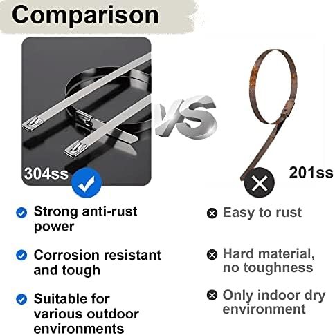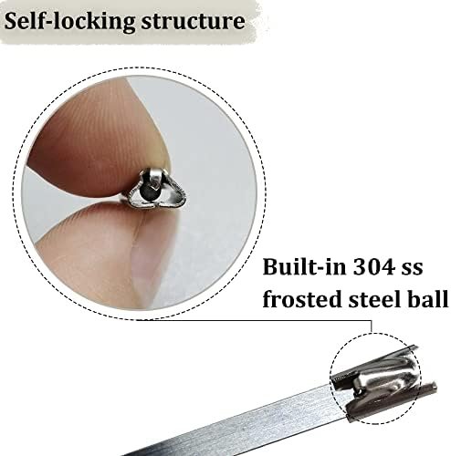 EASY TO USE : The simple buckle structure of stainless steel zip ties simplifies the complexity of traditional clamps, and the built-in frosted steel balls can be firmly self-locking. The good fastening performance ensures the safety of the tied object without additional handling. Even one person can quickly perform a large number of similar tasks with minimal effort.