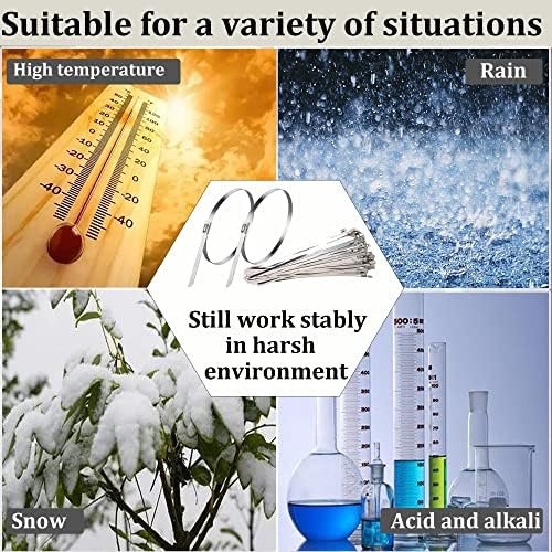 -170º F to +1000º F: ZOUNI metal zip ties are made of high quality 304 stainless steel material, with strong adaptability to ambient temperature, temperature resistance range: -170º F to +1000º F , even in strong low temperature and high temperature environment can still work normally.