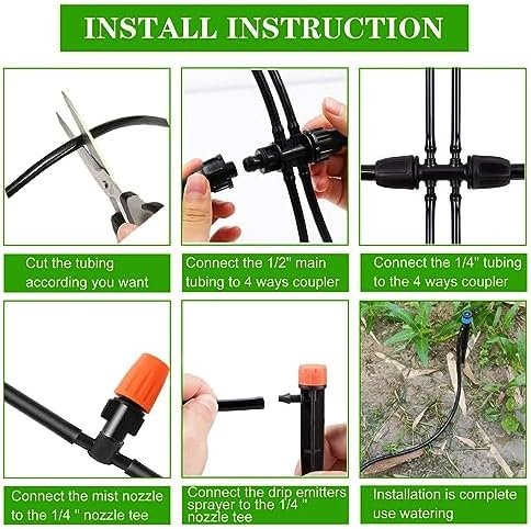 Easy Installation: No digging or plumbing skills required! Just cut the tube, connect the nozzle or dripper to the fitting and turn on the faucet to start the plant drip irrigation system.