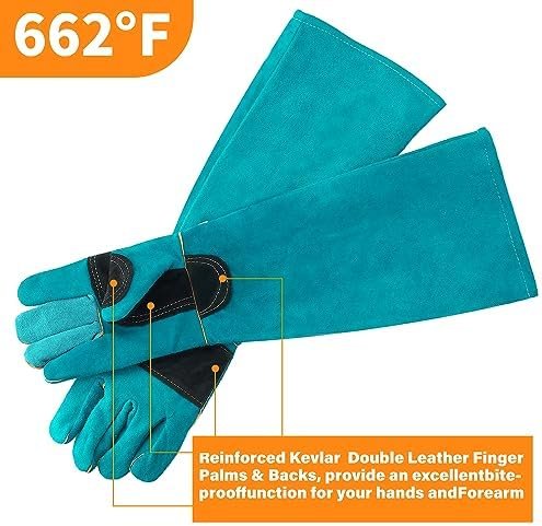 EXCELLENT BITE PROOF: This Leather Animal Handling Gloves is made by Top Grain Leather and reinforce Double Leather Finger Palms & Backs, provide an excellent bite-proof function from small animal for your hands and Forearm.