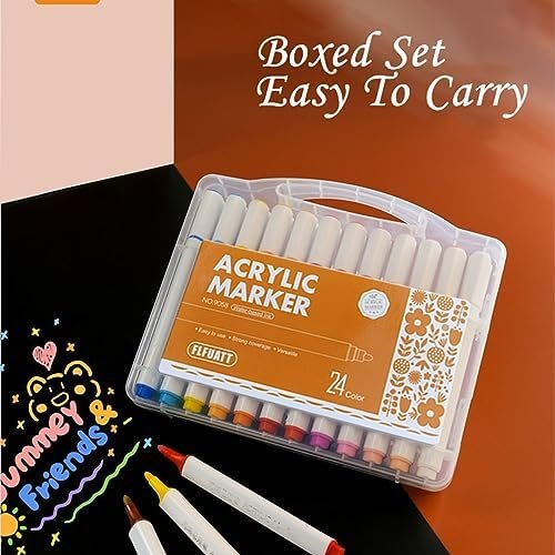 Rich Color: Acrylic Paint Marker Set includes 24 colors, each acrylic marker’s colors are bright and vibrant, it’s a good helper for you to design posters, make greeting cards, draw colored stones, hand-painted books and paintings.