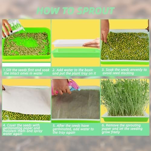 Wide Application: The seed sprouter tray can sprout various types of seeds, such as soybeans, buckwheat, radish, wheatgrass, okra, peanuts, peas, alfalfa, and broccoli. Growing microgreen vegetables is easy for beginners.