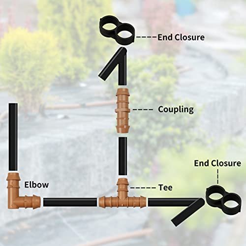 Great value: includes 6 Tees, 6 Couplings and 6 Elbows,6 End Cap Plugs, 24 pieces drip irrigation parts in total