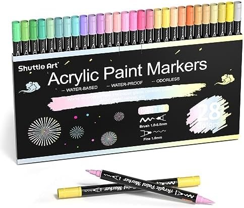 【28 UNIQUE AND PASTEL COLORS】: Shuttle Art 28 acrylic paint markers set contains 28 PASTEL colors: With so much colors, you can almost complete all of your daily creations.