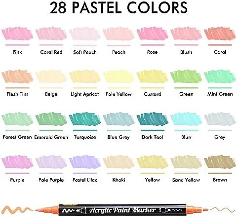 28 Pastel Colors Dual Tip Acrylic Paint Markers, Brush Tip and Fine Tip Acrylic Paint Pens for Rock Painting, Ceramic, Wood, Canvas, Plastic, Glass, Stone, Calligraphy, Card Making, DIY Crafts