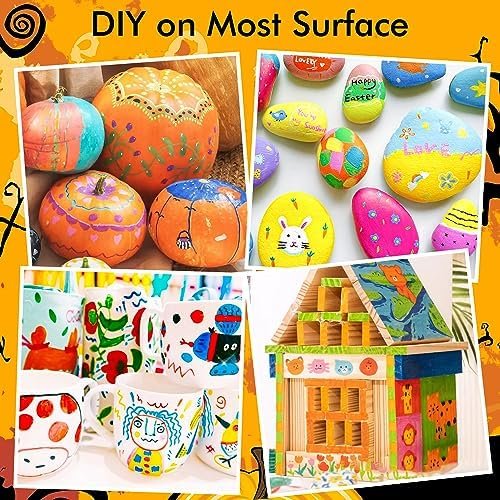 【MULTI-PURPOSE】: Enjoy creating art projects on a variety of surfaces, acrylic paint marker set suitable for rock painting, ceramic and mug painting, glass and wine glass painting, wood, fabric, stone, metal, plastic, canvas, Christmas ornament, Halloween pumpkin painting, calligraphy, scrapbook, bullet journal, brush lettering, custom mugs, DIY crafts projects, and much more for both smooth and porous surfaces.