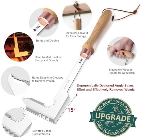 ✅【Upgraded Weeding Tool】AON’s brand weeder and weed pulling tool work on almost any type of surface, especially weeds and moss in sidewalks, driveways, patios, brick, walls and other tight spaces. They make great gardening tools and garden tool set!