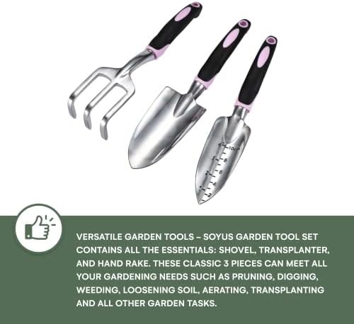 Versatile Garden Tools – This set includes a shovel, transplanter, and hand rake to meet all your gardening needs such as pruning, digging, weeding, loosening soil, and all other garden tasks.