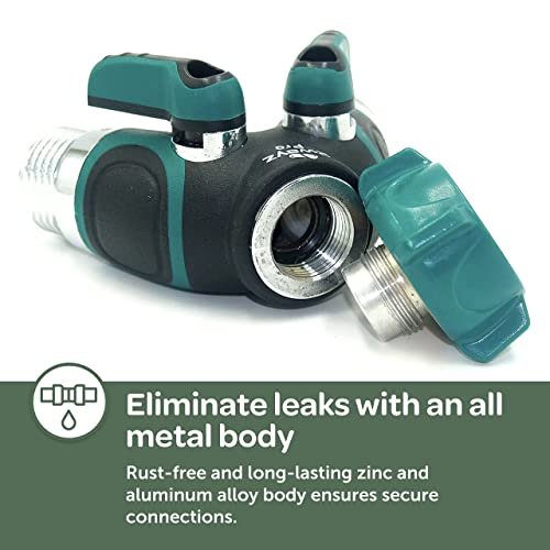 BOLTED COMPONENTS: Enhance your watering experience with the latest version of our dual water hose connector. Our expert engineers have redesigned all crucial components, ensuring a firm connection.