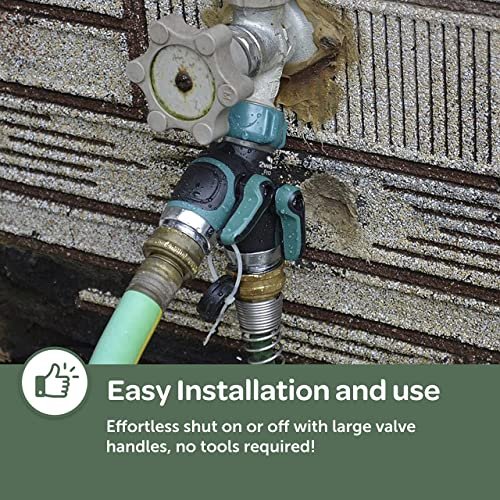 2WAYZ- Hose Splitter, 2 Way Heavy Duty, Garden Hose Splitter, Faucet Splitter, Outdoor Faucet Splitter, y Adapter for Water Hose, Water Spigot Splitter, All Metal, with Shut off Valve – 4″ x 4″ x 1.5″