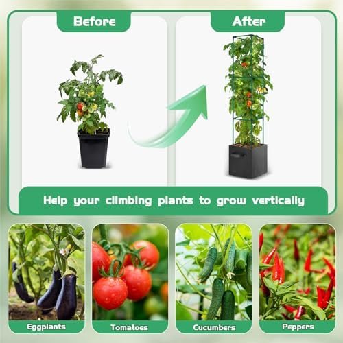 【Versatile Support for Climbing Plants】Our tomato plant support offer vertical support for all indoor and outdoor climbing plants. Beyond tomatoes, they are ideal for vining vegetables like legumes (peas, fava beans, and green beans), cucumbers, squash, and zucchini. Our plant support towers are adjustable, providing optimal support as your plants grow. A must-have for a thriving garden, encouraging healthier and more productive vine plants.