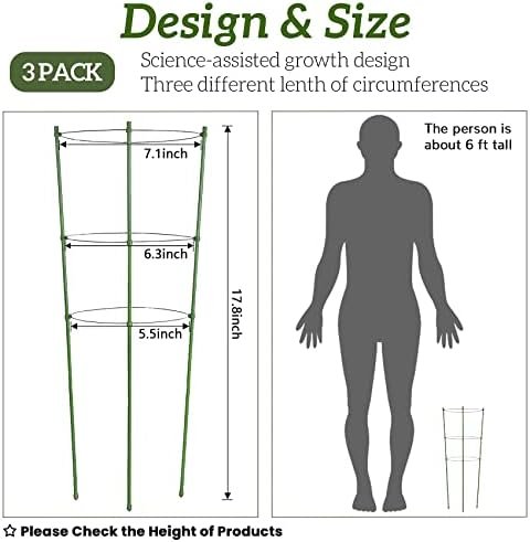 Product Details: Product includes 3 pack of 18-inch tomato cages with 3 adjustable rings.You can support multiple tomato plants or other vining vegetables at once, ensuring a bountiful harvest.