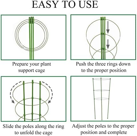 Easy Assembly: Setting up the tomato cages from this pack is a quick and hassle-free process. They feature a simple and intuitive design that requires no tools or complex instructions. Just unfold the cages, place them around your tomato plants, and secure them in the ground. This easy assembly saves you time and effort in the garden.