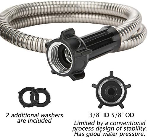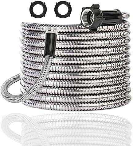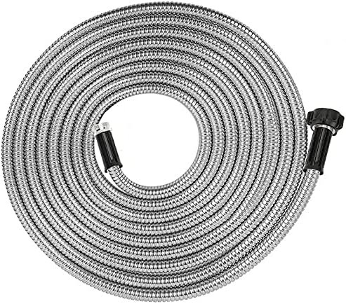 KINK FREE – The body of the hose is encased in a sturdy stainless-steel outer layer allows for a consistent, steady and high-pressure water output. It is memoryless and will lay flat, resist kinks.