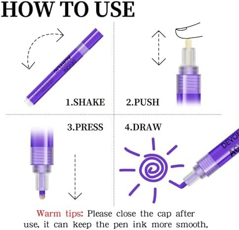 ❀【Easy to use】these acrylic paint pens are shake well before every usejust shake, the press, draw and put the cap on the pen after use.they go smooth, ink flows nicely, dry quickly and the color doesn’t bleed.