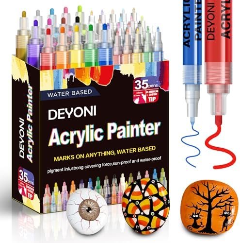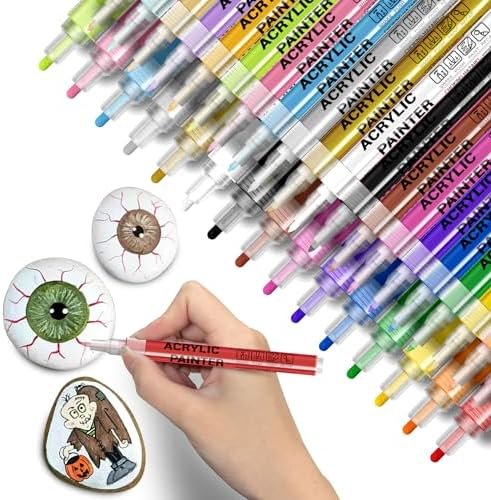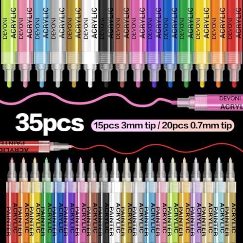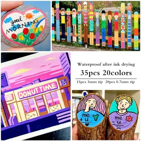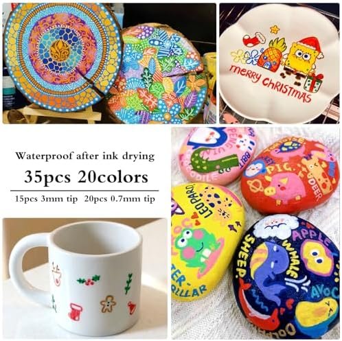 ❀【 Super value 35 pack】2 types of tips to meet different requirements.20pcs extra fine tip (0.7mm) and 15pcs medium tip (2-3mm), the paint pens paint markers variety of colors enable to draw or add embellishments to your rocks, stones, canvas, wood, glass jars, vase, christmas balls, cards, and clay pot.